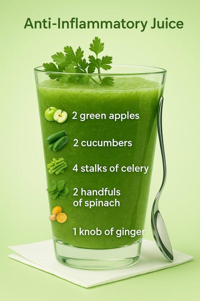 Packed with vitamins, antioxidants, and natural anti-inflammatory ingredients, this refreshing juice supports your immune system and helps reduce inflammation in the body. 🌿💚