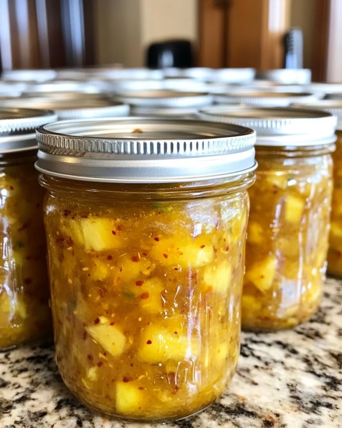 In the heart of the Midwest, where the seasons paint the landscape with vibrant hues, preserving the bounty of summer has always been a cherished tradition. This Slow Cooker Spicy Pineapple Chili Jam is a delightful twist on a classic, infusing a touch of tropical sunshine into a beloved preserve. The sweetness of pineapple dances with the heat of chili, creating a jam that’s as versatile as it is delicious. It’s a recipe that brings together the old and the new, reminding us of the days when canning was a community affair, and every jar was a promise of warmth in the colder months. This jam is perfect for those who love a little spice in their life, and it’s a wonderful way to capture the essence of summer all year round.