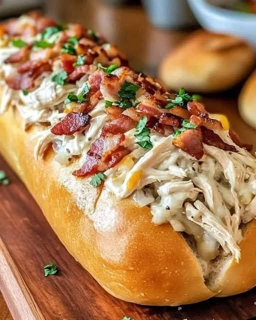 Slice the loaf of French bread in half horizontally, creating two long halves. Use a spoon to hollow out the center of each half, leaving about 1/2 inch of bread along the sides and bottom to create a pocket for the filling.