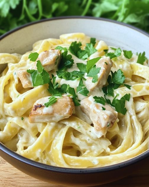 This creamy garlic chicken pasta pairs wonderfully with a simple green salad dressed in a light vinaigrette to balance the richness of the sauce. You might also enjoy it with a side of garlic bread or a slice of crusty baguette to soak up every last bit of the delicious sauce. For a touch of freshness, consider serving it with steamed or roasted vegetables like asparagus or broccoli.