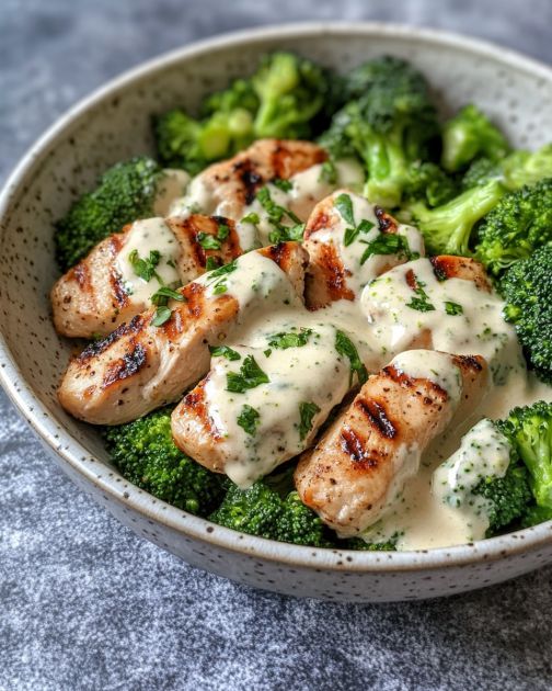 Low Carb Grilled Chicken and Broccoli Bowls with Creamy Garlic Sauce