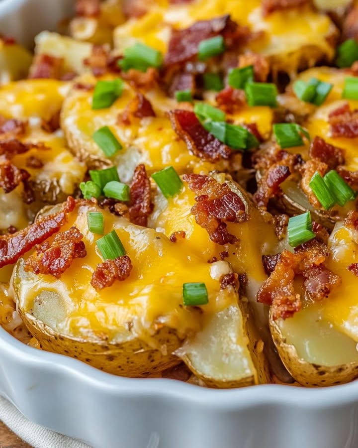 Cheesy Mississippi Mud Potatoes are the ultimate comfort food, combining the crispy, cheesy, and melty goodness that everyone loves. This dish is inspired by the rich flavors of the South, where hearty and indulgent meals are a staple. Perfect for a family gathering or a cozy night in, these potatoes are sure to be a hit. The addition of bacon bits on top adds a smoky crunch that elevates the dish to a whole new level. Whether you’re a busy professional or a home cook looking to impress, this recipe is simple yet satisfying.