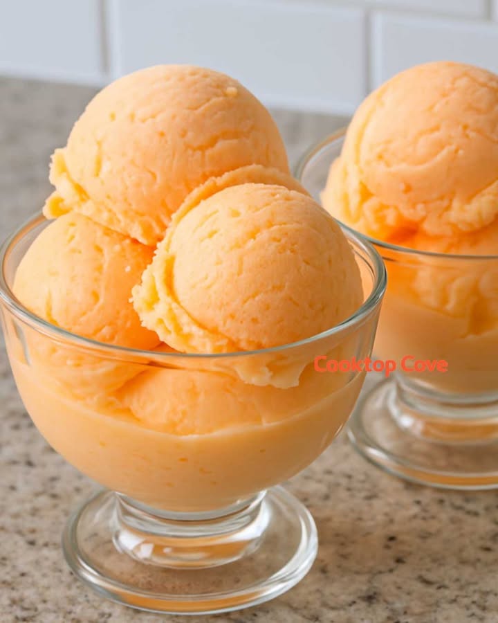 This orange sherbet pairs wonderfully with a light and crisp salad, making it a refreshing end to a summer meal. You could also serve it alongside a slice of angel food cake for a more indulgent dessert. If you’re hosting a gathering, consider offering it with a platter of fresh berries and mint leaves for a colorful and vibrant presentation.