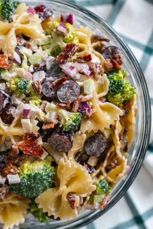 This vibrant pasta salad combines crisp broccoli, sweet red grapes, smoky bacon, and crunchy toasted pecans with tender bow-tie pasta, all coated in a creamy honey-mayo dressing. Perfect for picnics, potlucks, or a refreshing side dish!
