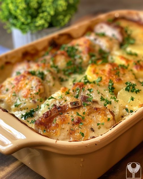 Smothered Pork Chop Scalloped Potato Casserole combines the comforting flavors of tender pork chops and creamy, cheesy potatoes. This dish draws from classic Midwestern comfort food traditions and is perfect for a family dinner or special occasion. The smothering technique ensures that the pork chops remain moist and flavorful, while the scalloped potatoes add a rich and hearty component. This recipe is an excellent choice for anyone seeking a filling, homestyle meal that’s both comforting and sophisticated.