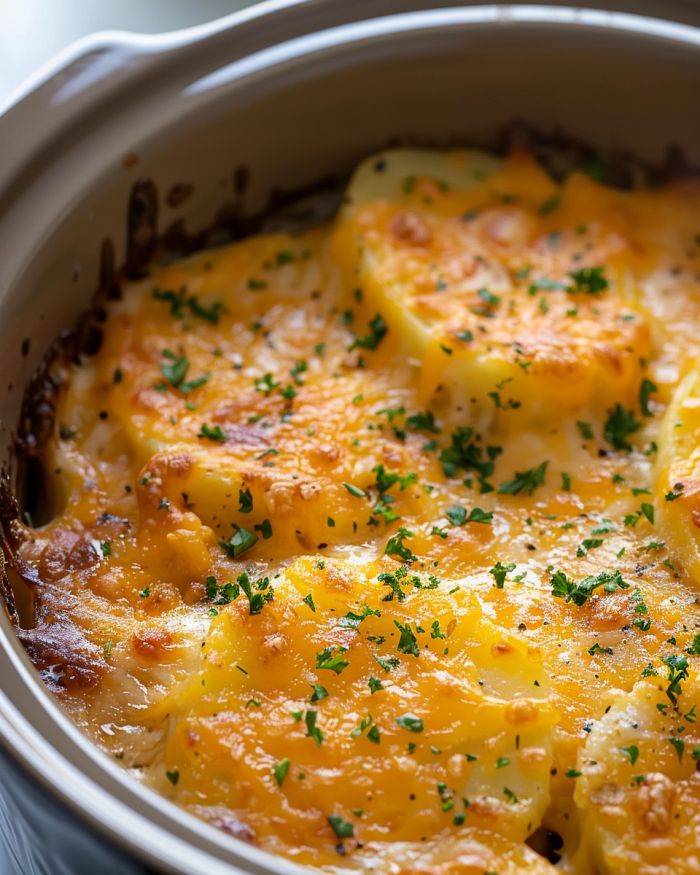Scalloped potatoes, a dish that brings comfort and warmth to any table, has its origins deeply rooted in French cuisine, known there as gratin Dauphinois. Traditionally, this dish is baked, but I’ve taken the liberty to adapt it for the slow cooker, ensuring it fits perfectly into our busy lives while still providing that slow-cooked taste and tenderness. Adding garlic and cheddar brings a boldness to the recipe, combining the creamy texture of the potatoes with sharp and aromatic flavors that delight the palate. Perfect for those seeking a side dish that is both delicious and straightforward, these garlic cheddar scalloped potatoes are a must-try.
