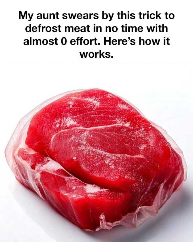 Defrosting meat can often be a time-consuming and frustrating task, especially when you’re in a hurry to prepare a meal. Many of us have experienced the struggle of trying to quickly thaw a frozen piece of meat, only to end up with unevenly defrosted portions or, worse, partially cooked edges. My aunt, a seasoned home cook, has discovered a simple yet effective trick that defrosts meat quickly with minimal effort. In this article, we’ll explore her method and why it might just become your go-to solution for defrosting meat.
