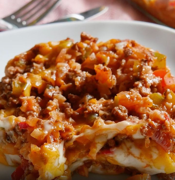 A Mexican meal without rice is like a day without sunshine. This one-pan, low-carb meal makes use of one of the best inventions, cauliflower rice, to bulk up and add texture to this insanely flavorful dish. Luckily, cutting back on the carbs leaves room for lots of gooey melted cheese!