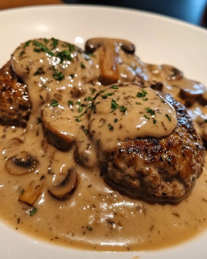 . Slow Cooker Herb Infused Salisbury Steak with Mushroom Gravy
