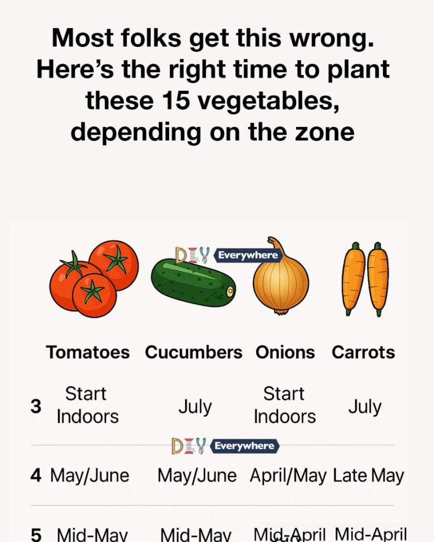 This guide breaks down when to plant 15 popular vegetables—from tomatoes and cucumbers to onions and kale—based on your planting zone. Focusing on Zones 3 through 5 (with tips that can be adjusted for nearby zones), this detailed list will help you confidently plan your planting calendar. Whether you’re a new gardener or looking to sharpen your seasonal strategy, using zone-specific guidance will give your crops a head start—and save you from the heartbreak of planting too early or too late.