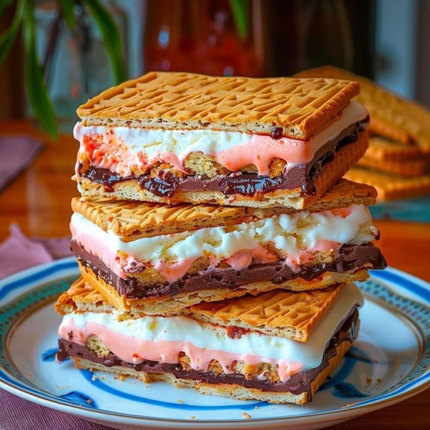 Indulge in these irresistible S’mores Ice Cream Sandwiches—a frozen twist on the classic campfire treat! Layers of creamy vanilla ice cream, fluffy marshmallow crème, and rich chocolate frosting are sandwiched between graham crackers for a decadent summer dessert.