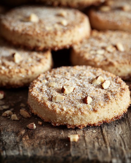 These nutty sugar-dusted shortbread cookies pair wonderfully with a hot cup of tea or coffee, making them an ideal afternoon snack. For a more decadent experience, try serving them with a scoop of vanilla ice cream or alongside a rich chocolate mousse. If you’re hosting a gathering, consider arranging them on a platter with a selection of cheeses and fruits for a delightful contrast of flavors and textures.