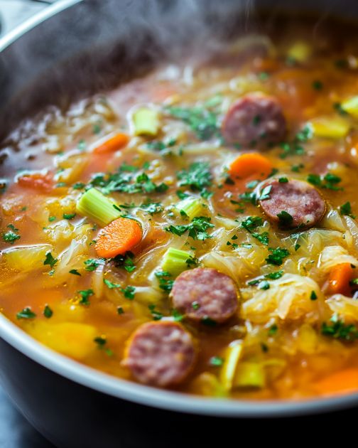 This smoked sausage and sauerkraut soup is a comforting dish that brings a taste of traditional German cuisine right to your kitchen. It’s perfect for those chilly evenings when you want something hearty and warming. The combination of smoked sausage, tangy sauerkraut, and fresh vegetables creates a flavorful broth that will have your family asking for seconds. This dish is not only delicious but also a great way to introduce your loved ones to new flavors and textures.