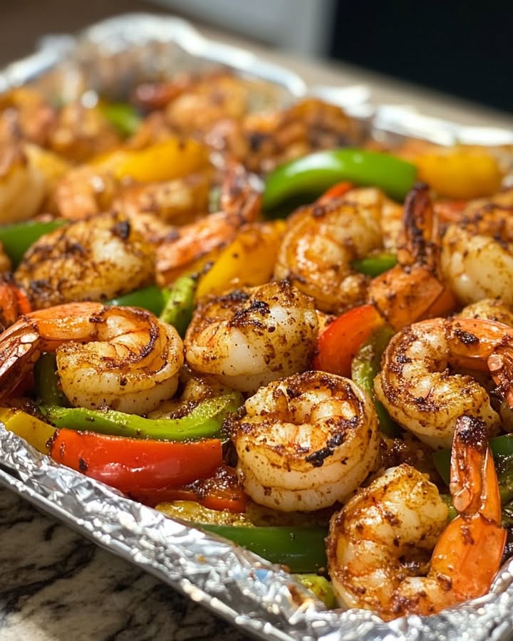 Baked Cajun Shrimp with Bell Peppers in Tin Foil