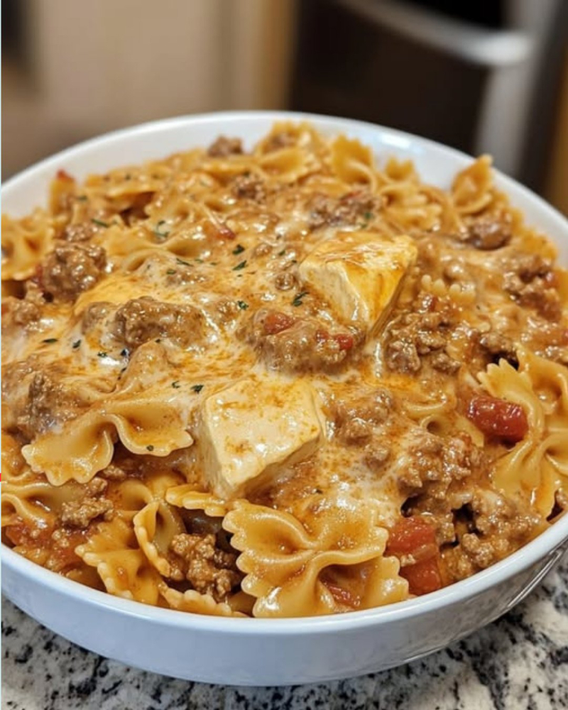 Velveeta Beef & Bowtie Pasta in Creamy Sauce