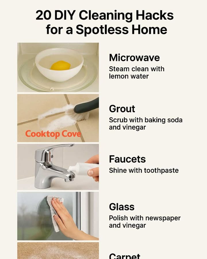 Achieving a spotless home doesn’t have to be a chore. With these 20 DIY cleaning hacks, you can tackle dirt, grime, and odors using simple, natural ingredients. Not only do these methods save time and money, but they also promote a healthier living environment by reducing the need for harsh chemicals. Embrace these hacks to maintain a clean, fresh, and inviting home effortlessly.