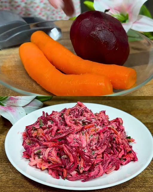 - In a large bowl, combine the grated beets and carrots with the cheese, walnuts, parsley, and minced garlic.