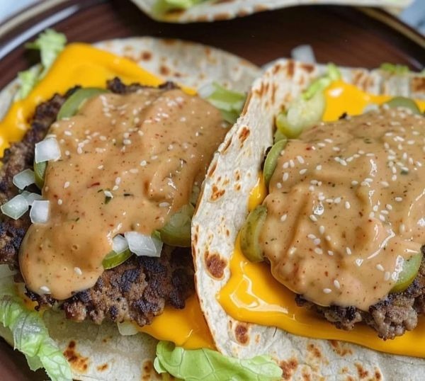 Serve the Big Mac-style smash burger tacos immediately with extra special sauce on the side.