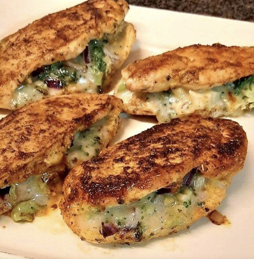 Stuff each chicken breast with the cheesy broccoli mixture.
