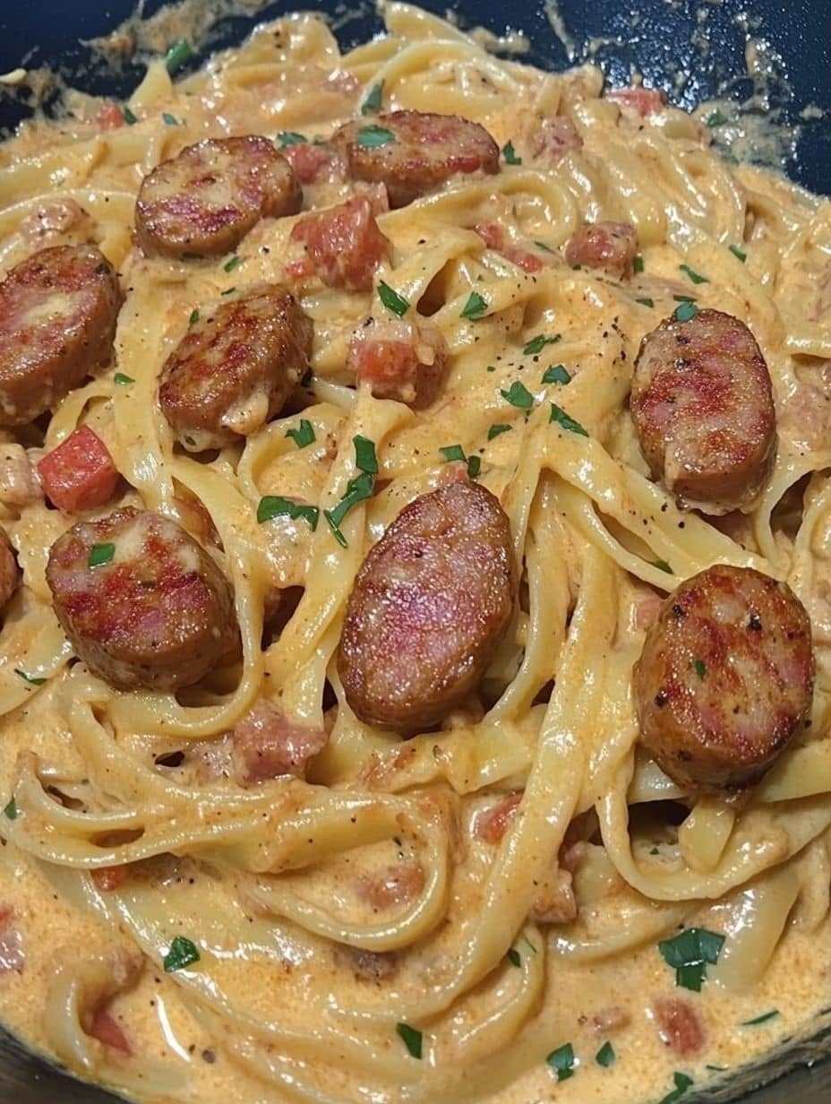 Combine Shrimp, Sausage, and Pasta: Add the cooked shrimp, sausage, and pasta to the skillet. Toss everything together until well coated with the sauce.