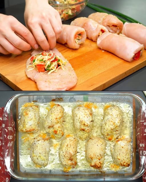 Cut each chicken fillet in half lengthwise to make thinner, more pliable pieces for rolling. Place them between two sheets of plastic wrap and gently pound to an even thickness if needed. Season both sides with salt, pepper, and dried garlic. Set aside to marinate for 30 minutes to absorb the flavors.