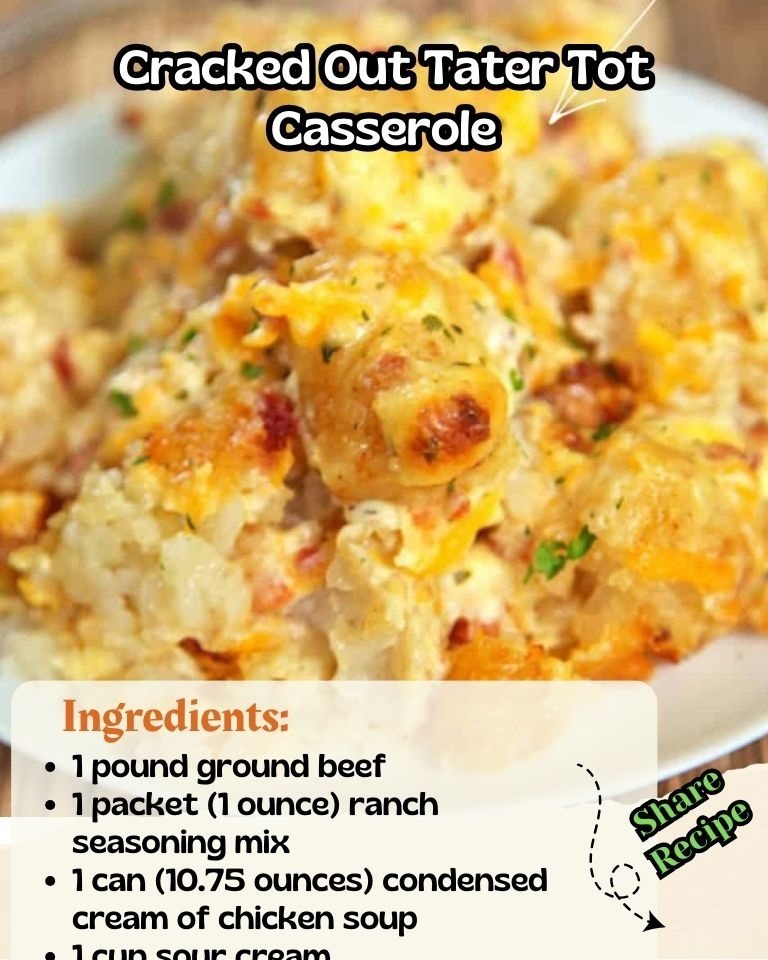 12. Serve your delicious Cracked Out Tater Tot Casserole hot and enjoy as a satisfying meal!