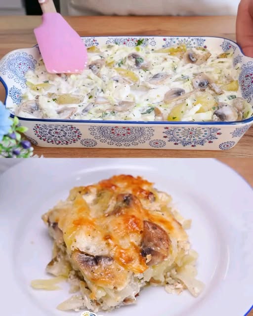 In a mixing bowl, combine the sautéed cabbage, potatoes, and mushrooms.