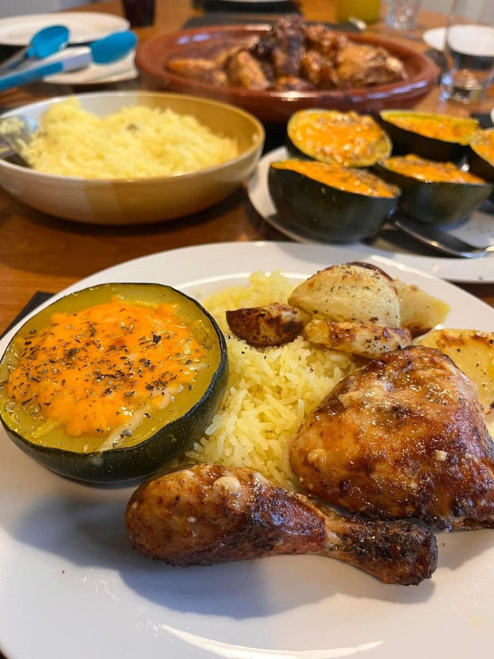 I added the cooked gem squash to the chicken only when i changed the stove setting to grill for the last 10 minutes only to get that grilled effect.