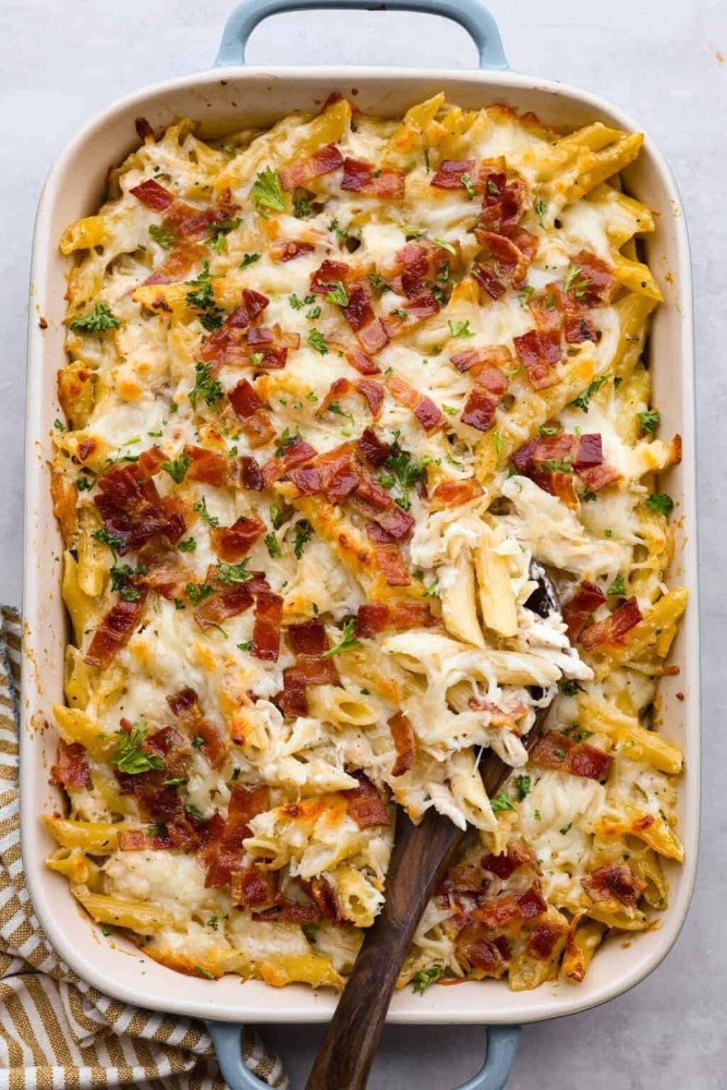 This recipe combines the creamy goodness of Alfredo sauce with the zesty flavors of ranch dressing, crispy bacon, and juicy chicken to create a heartwarming Chicken Bacon Ranch Pasta Bake. It’s a perfect dish for busy weeknights, potlucks, or feeding a crowd.