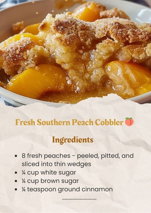 - Nutrition: Fresh Southern Peach Cobbler is a delightful dessert that brings together the sweetness of ripe peaches with a comforting, buttery topping. While it is a treat high in sugar and carbohydrates, it is perfect for special occasions and can be enjoyed in moderation as part of a balanced diet.