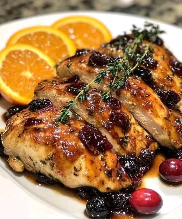Enjoy your Glazed Orange Cranberry Roasted Chicken—a perfect balance of sweet, tangy, and savory! 🍊🍗✨