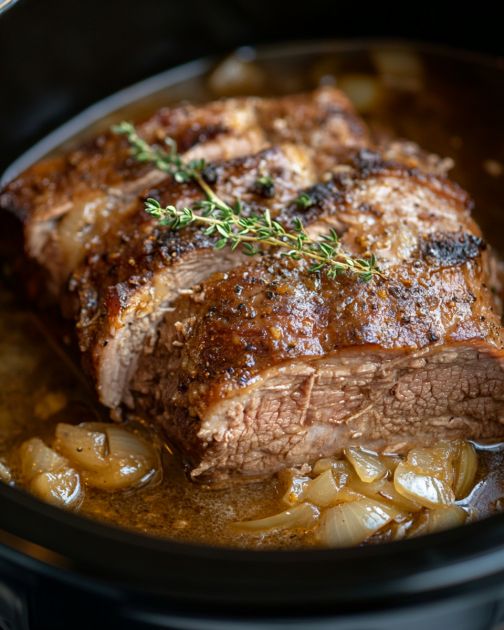 For a different flavor profile, try using a packet of ranch dressing mix instead of onion soup mix for a tangy twist. You can also add sliced onions, carrots, and potatoes to the slow cooker for a complete one-pot meal. If you prefer a bit of spice, add a teaspoon of smoked paprika or a pinch of cayenne pepper to the broth mixture. For a sweeter glaze, mix in a tablespoon of honey or brown sugar with the broth.
