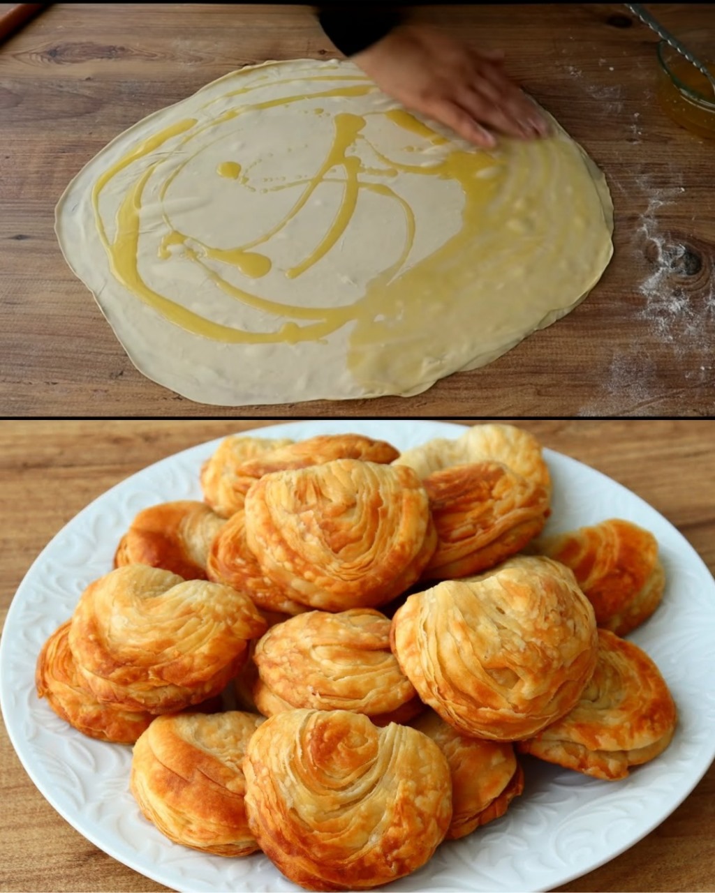 Roll the Dough: On a floured surface, take one piece of dough and roll it out as thinly as possible using a rolling pin. Aim for a thin sheet, which will create those lovely layers.