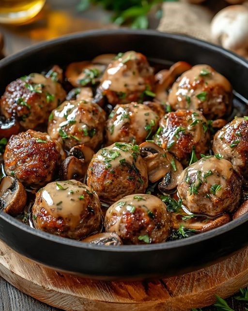 Melting Meatballs in Creamy Mushroom Sauce