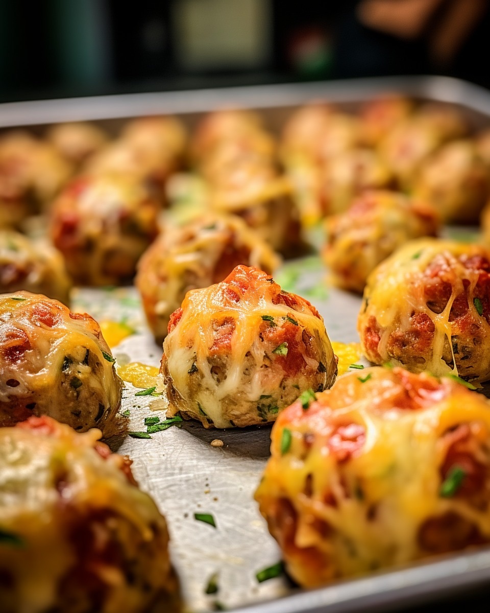 These Sausage Ball Bites are a delicious and crowd-pleasing appetizer that combines sausage (can be spicy), tangy Rotel tomatoes, and creamy cream cheese. This popular dish originated in the southern United States, where it quickly became a favorite at potlucks, parties, and game day gatherings. With its flavorful combination of ingredients and easy preparation, these sausage balls are sure to be a hit at any event.