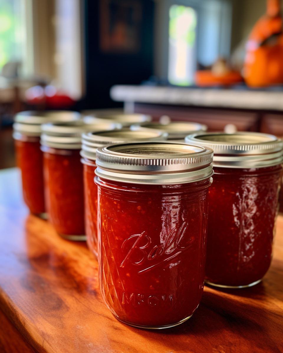 6. Spoon the jam into prepared jars. Seal the jars and cool completely at room temperature before refrigerating.