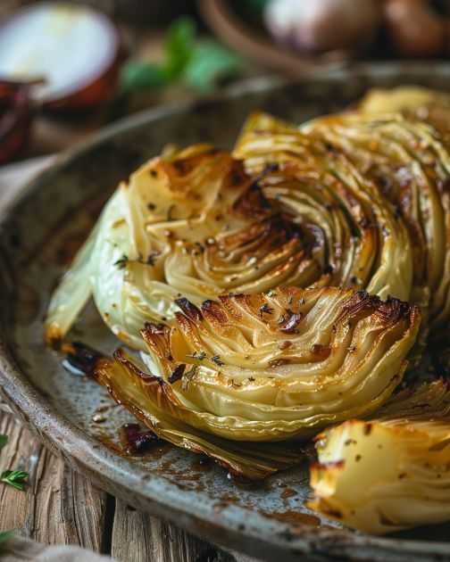 These roasted cabbage wedges pair beautifully with a hearty protein like roasted chicken or grilled salmon. If you’re going for a lighter meal, consider serving them alongside a quinoa salad or a simple lemon garlic pasta. The tangy onion dijon sauce also complements roasted potatoes or steamed green beans well, making it a versatile addition to your weekly meal plan.