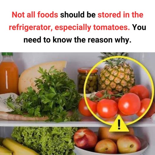Instead of refrigerating, tomatoes should be stored at room temperature in a dry, well-ventilated place, away from direct sunlight. This helps maintain their natural flavor and preserve their nutritional value for a longer time.