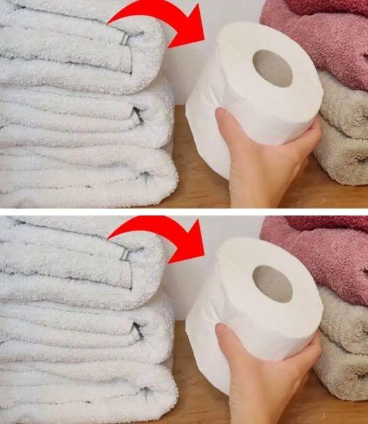 So a simple and very economical solution is to place a roll of toilet paper in your closet between our clothes and the piles of towels.