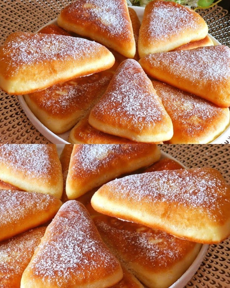 Heat vegetable oil in a frying pan over medium heat. Fry the triangles of dough until golden brown on both sides.