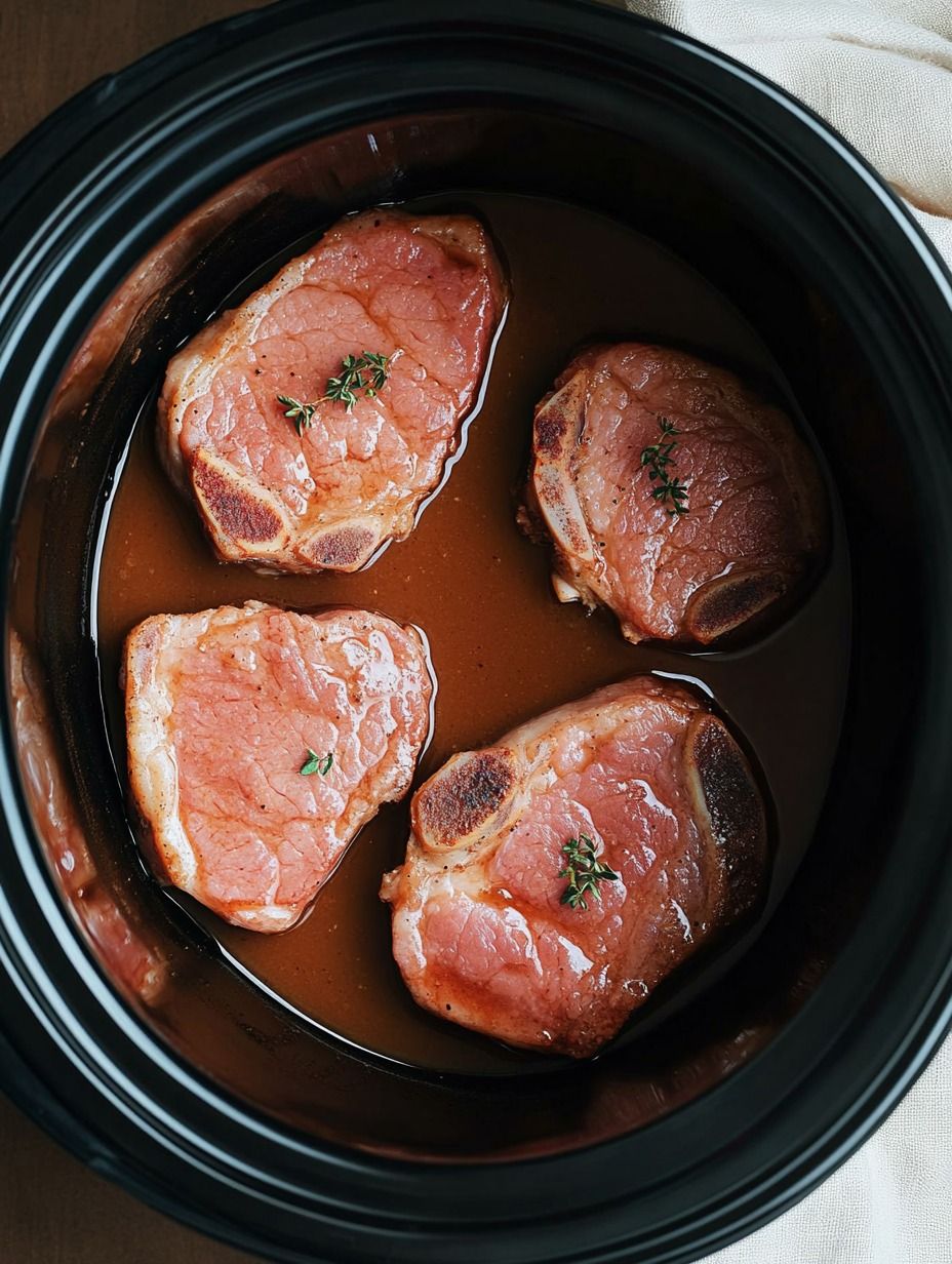 5. Transfer the pork chops to the slow cooker.