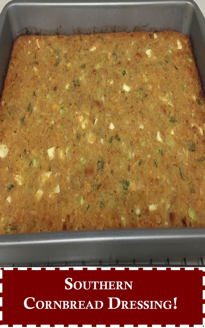 Nothing goes better with a juicy turkey and creamy gravy than some moist, soulful Southern Cornbread Dressing. I use to could eat this stuff by the spoonfuls when I was younger, which is probably why I still prefer my grandmother’s flavorful dressing to this day. I love the texture of this cornbread dressing. It holds it’s shape when it’s cut and it’s so moist and full of flavor.