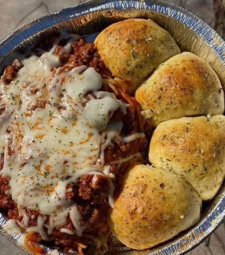 Cut the bread into slices and serve alongside the spaghetti.