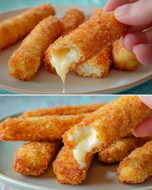 9. Fry cheese sticks in hot oil in small batches until the crust darkens.