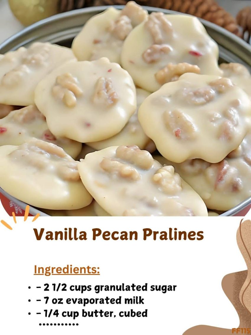 Vanilla Pecan Pralines are a creamy, melt-in-your-mouth candy beloved across the Southern United States, especially in New Orleans, Louisiana. These treats combine smooth vanilla or white chocolate with crunchy, buttery pecans to create a dessert that’s both nostalgic and decadent.