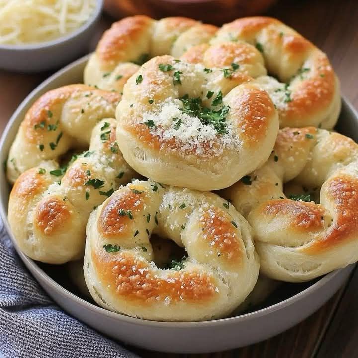 Sprinkle grated parmesan cheese over the warm knots.