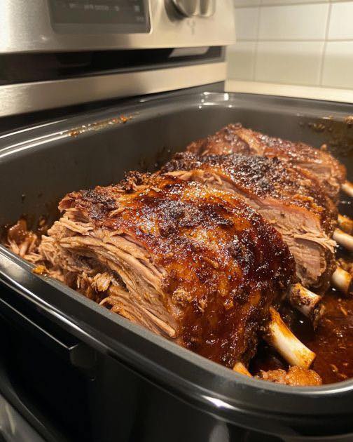 Place the pork shoulder in the slow cooker.