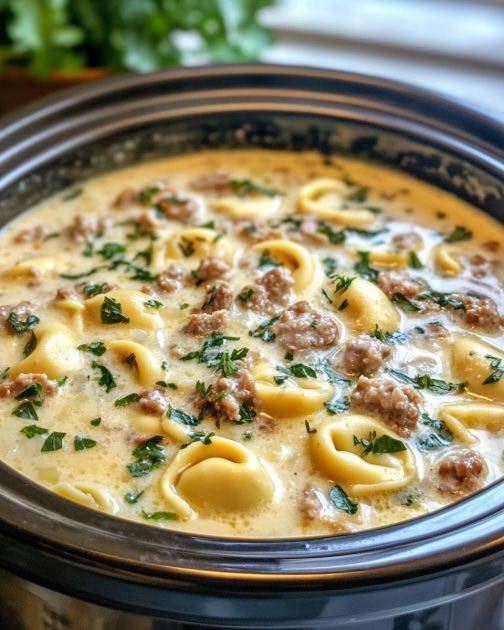 Slow Cooker Creamy Tortellini Soup with Sausage